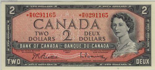 1954 $2 BC-38bA, A nice original UNC example with light handling visible between serial numbers. #RR0291165