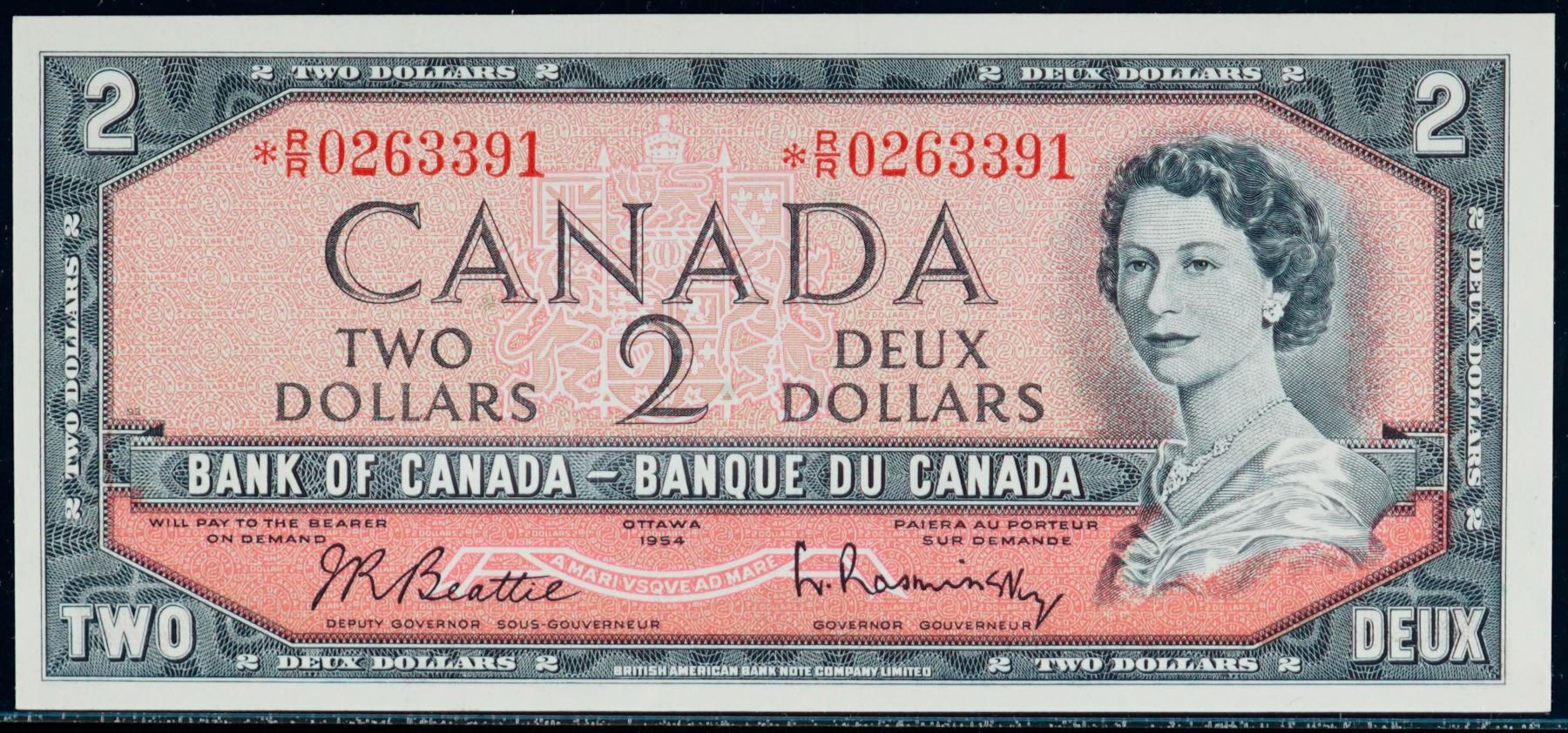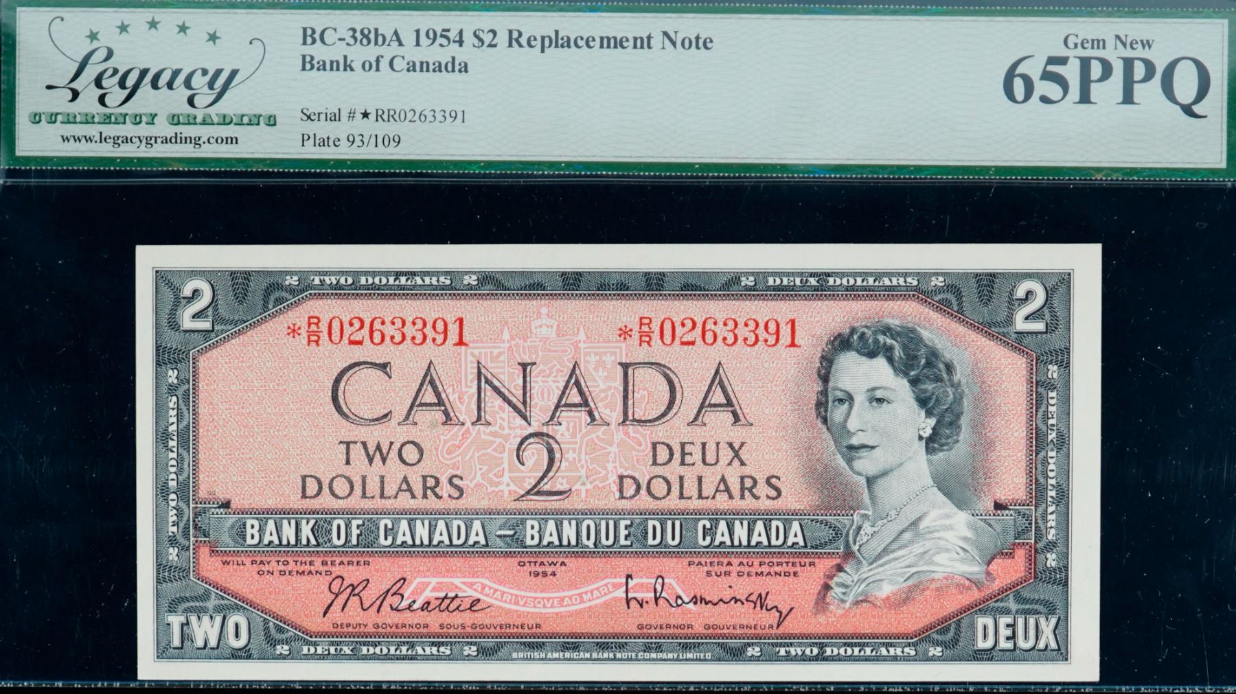 1954 $2 BC-38bA #*R/R0263391 Legacy Gem Uncirculated-65PPQ. Scarce replacement note.