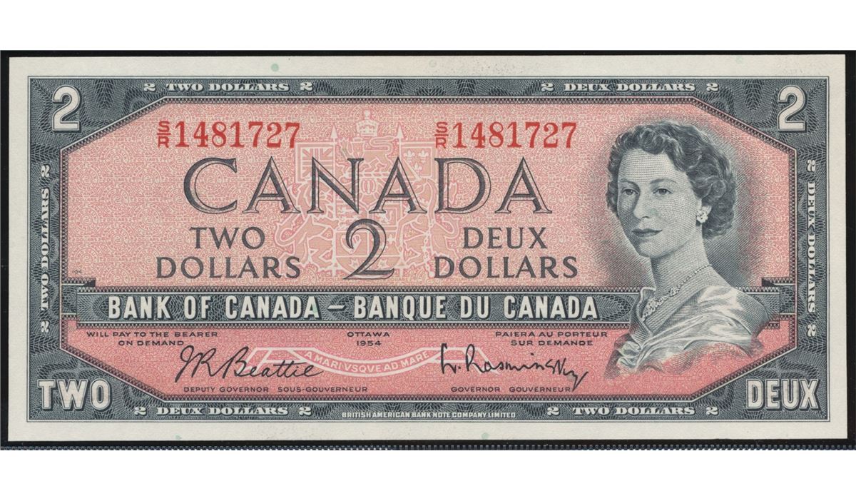 1954 $2 BC-38bT #SR1481727, CCCS UNC63. Test note.