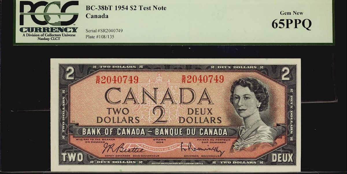 1954 $2 BC-38bT #SR2040749 PCGS 65PPQ. A popular Test note in gem condition