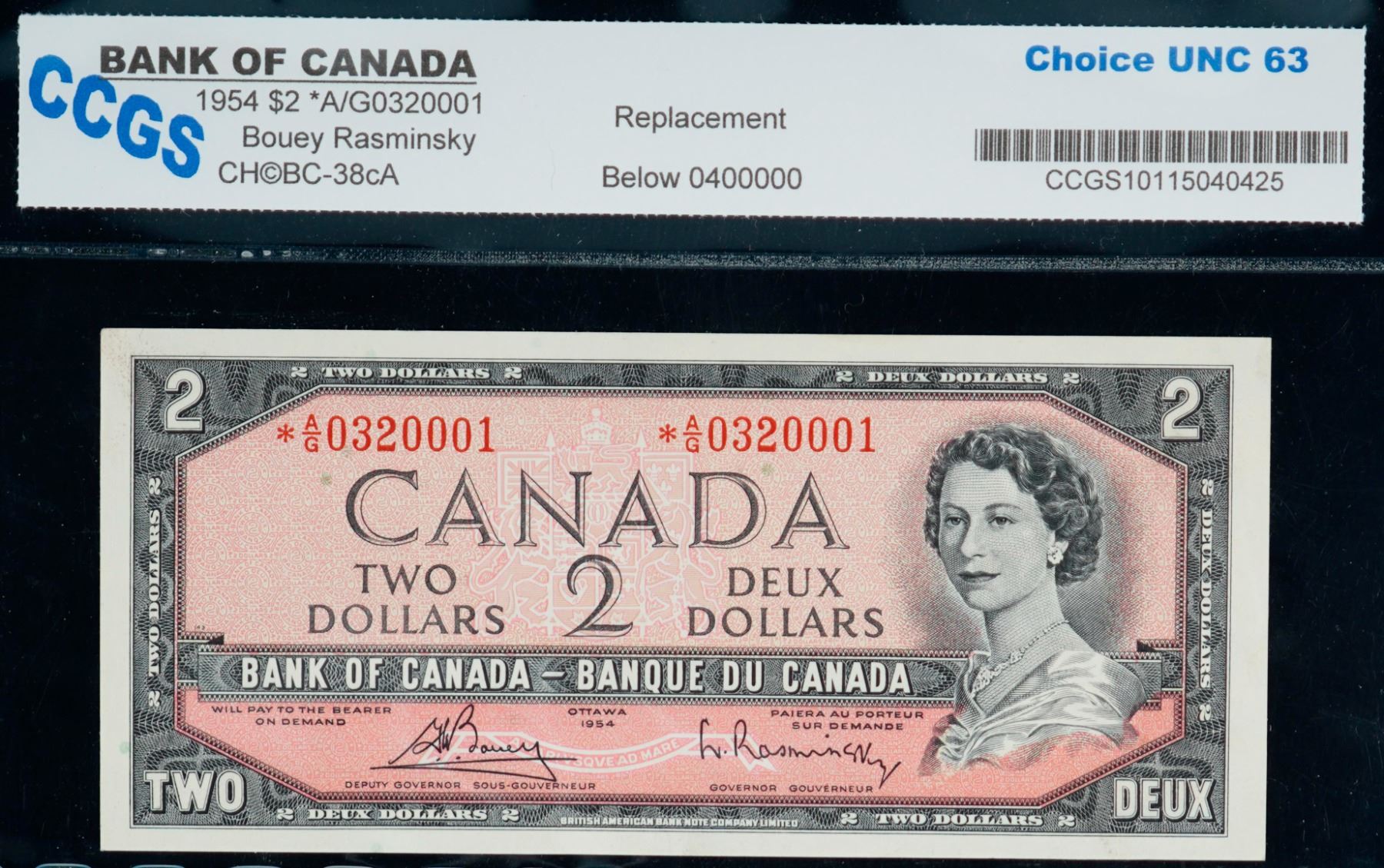 1954 $2 BC-38cA #*A/G0320001 CCGS Choice Uncirculated-63. Below 0400000.