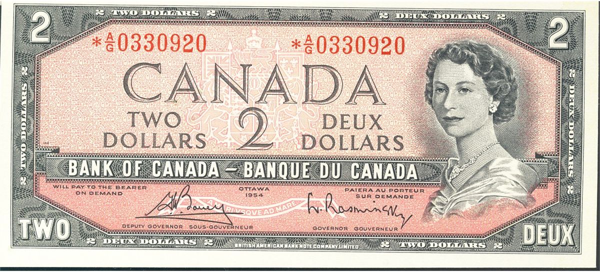 1954 $2 BC-38cA #*AG0330920. Below 0400000, Razor Crisp original.