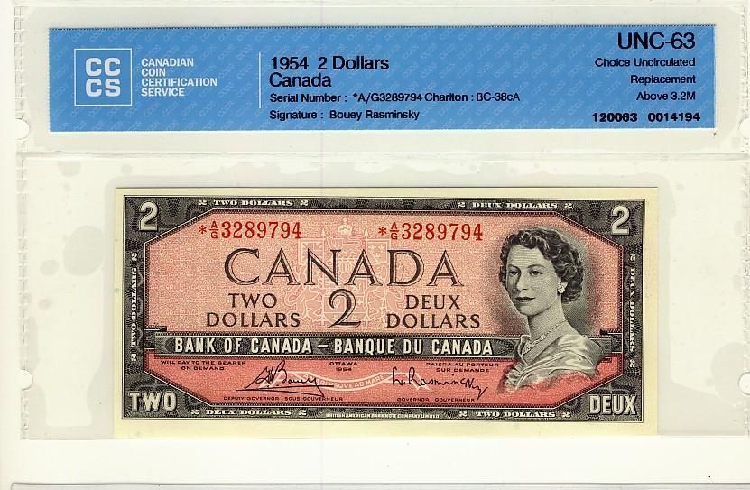 1954 $2 BC-38cA #*AG3289794 CCCS UNC63.