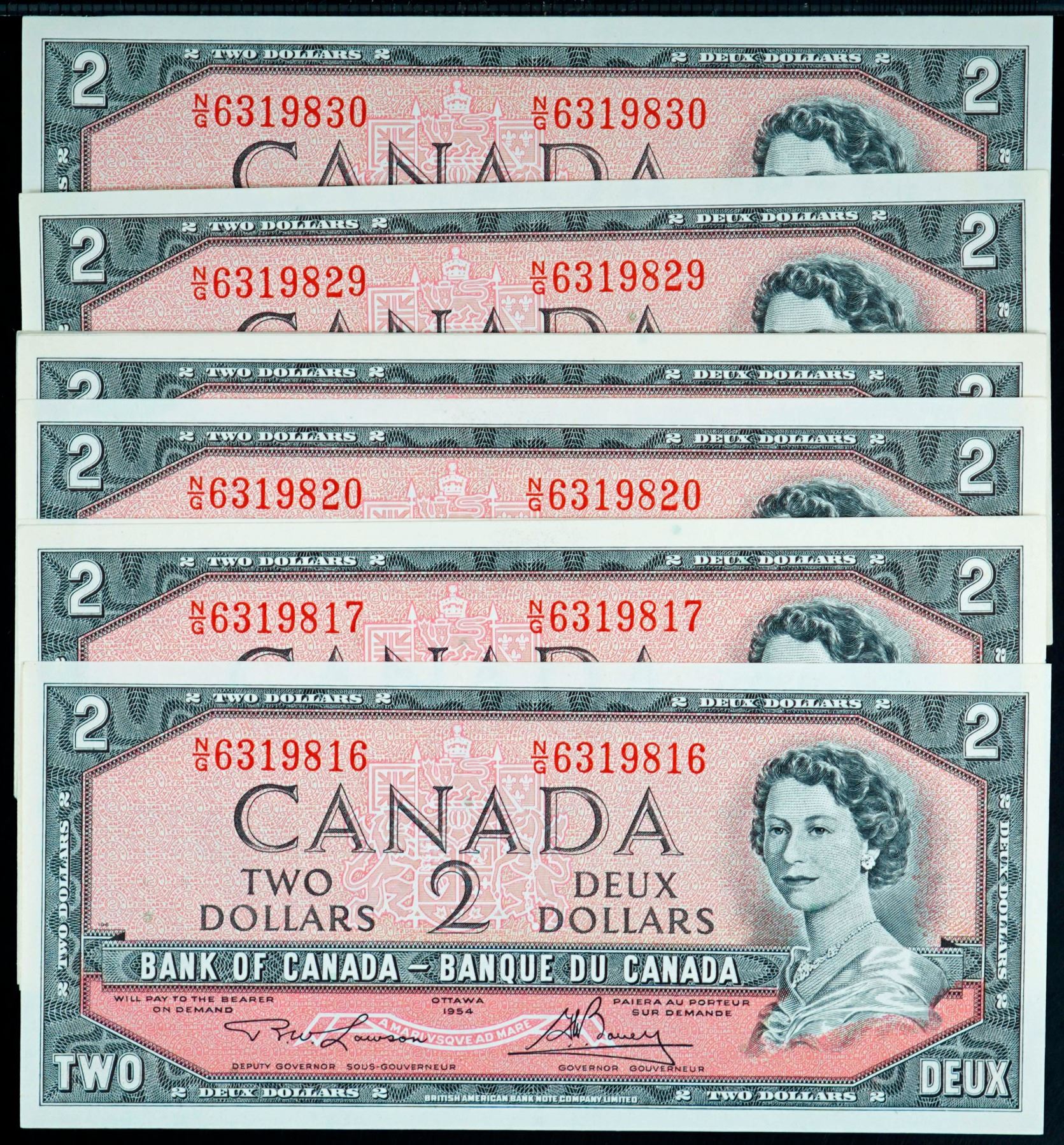 1954 $2 BC-38d #NGood-6319816-NGood-6319830. 15 Consecutive notes in Uncirculated or better.