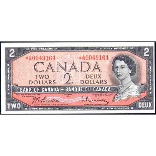 1954 Two Dollars Beattie-Rasminsky Replacement Note, BC-38bA Serial Number *A/B0049164, Uncirculated off-centre toward the right