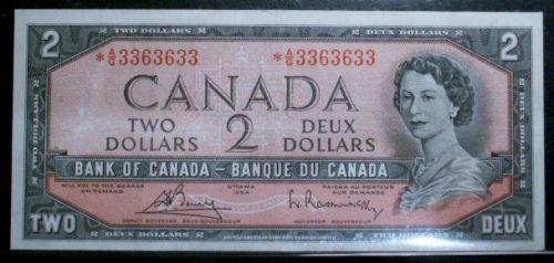 1954 $2 Scarce two digit RADAR AND REPLACEMENT Bouey-Rasminski *A/G3363633 EF, RARE and unusual!
