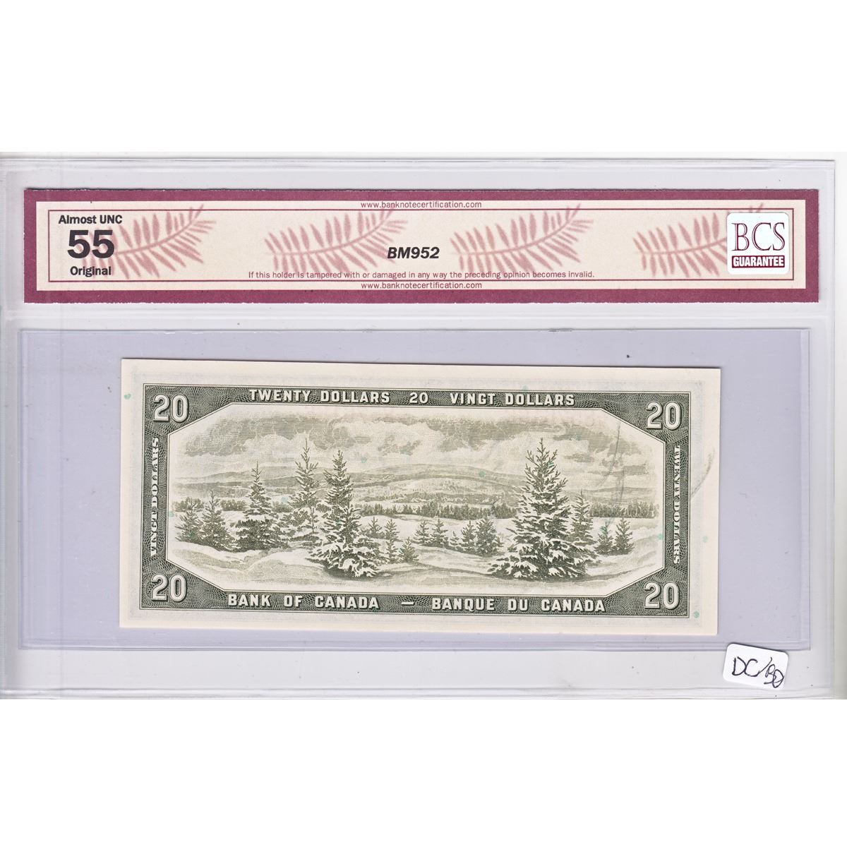 1954 $20.00 Note from the Bank of Canada; cat code BC-41b, Beattie-Rasminsky signatures, Prefix F/W, BCS Certified AU-55, Original. Buyers Premium will be added on all items as per our terms of sale. We accept Paypal, Credit Card, E-Transfer Payments, Cheque or Money Orders (there is an additional 3% fee for using Paypal or Credit Card). All invoices will be emailed immediately following the auction, please contact us if you would like to pay by credit card or receive a new revised lower total for mailing in payment or sending an e-transfer (3% discount). All Items Are Sold "AS IS", no returns