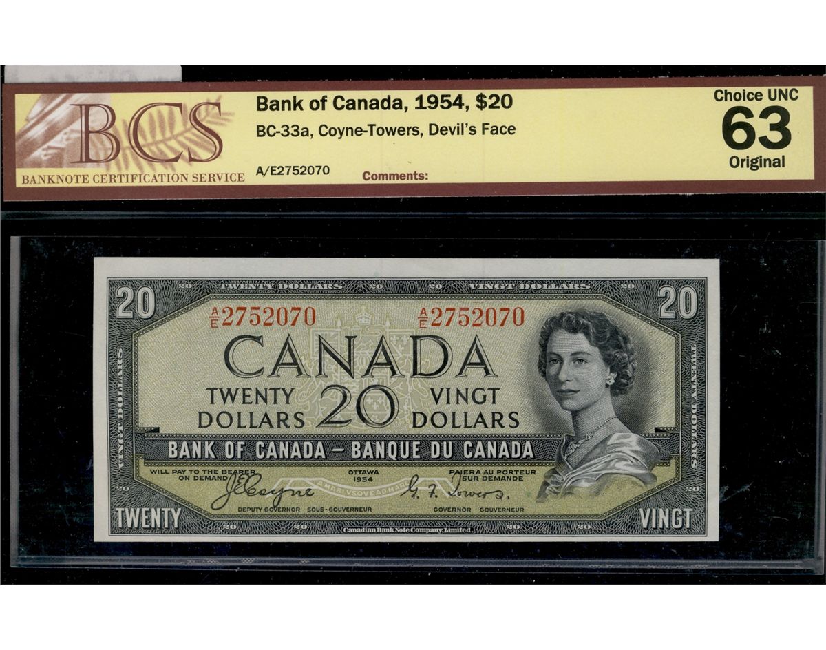 1954 $20 BC-33a #A/E2752070, BCS CH UNC-63, Original