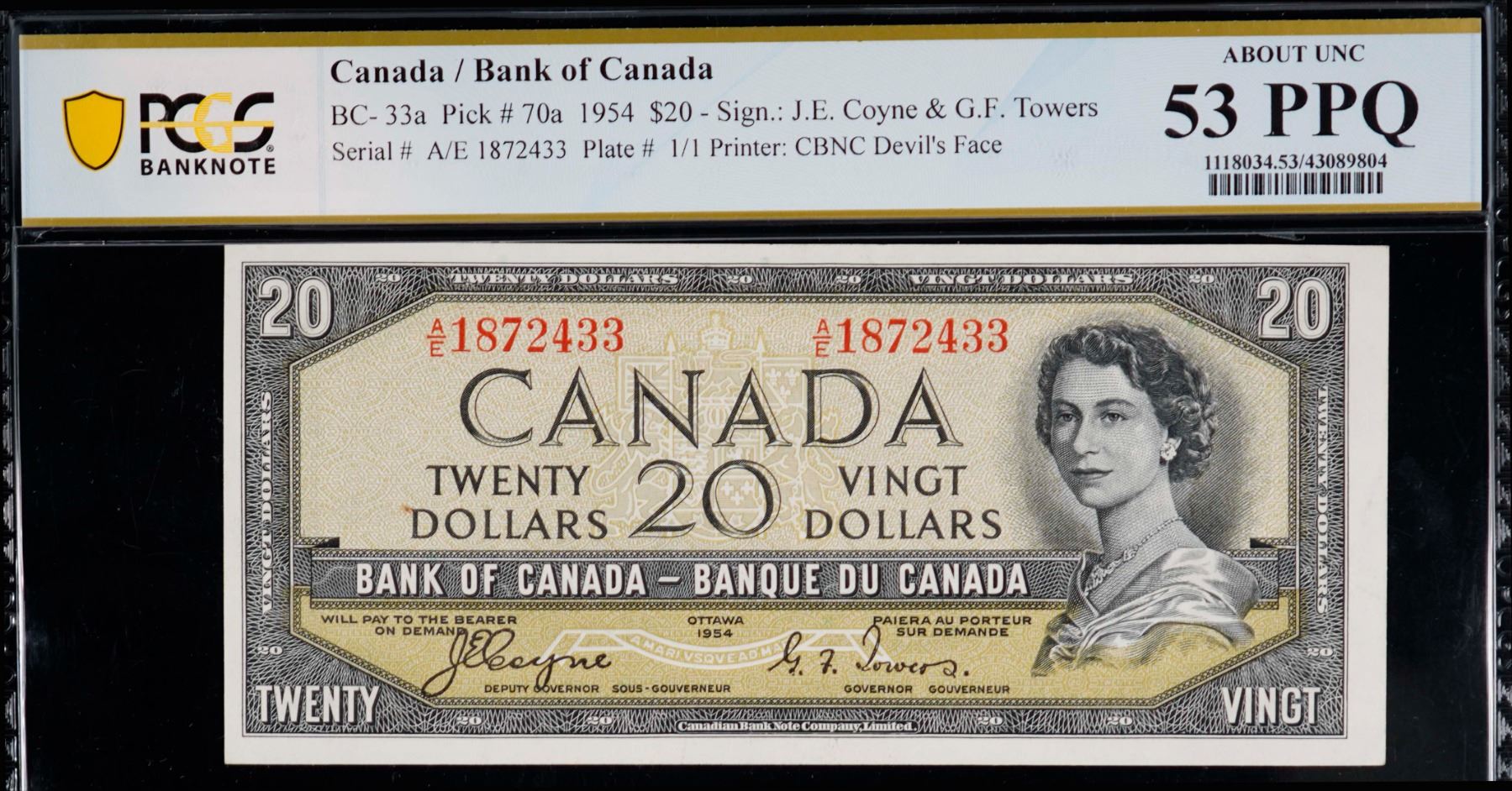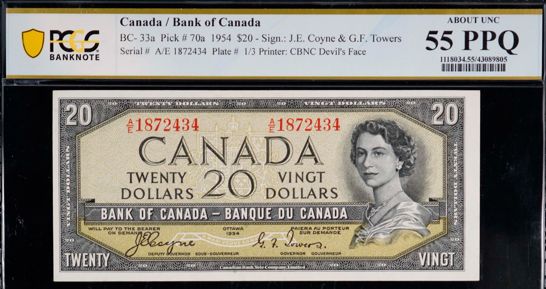 1954 $20 BC-33a #AE1872433-35, all PCGS Choice Extra Fine-45 to Choice About Uncirculated-55PPQ. Lot of 3 consecutive Devil's face notes.