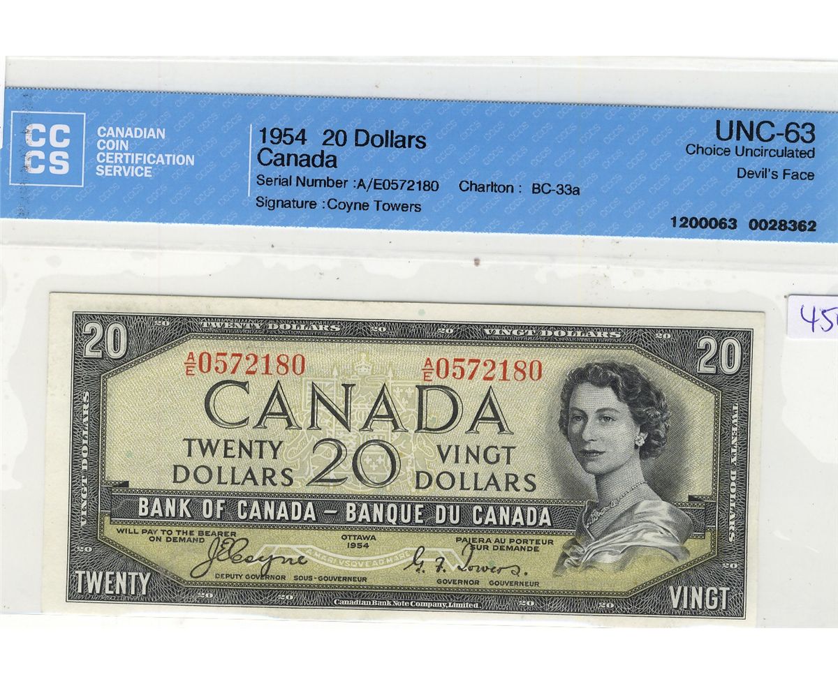 1954 $20 BC-33a Devil's Face CCCS UNC-63 Coy-Tow A/E, .
