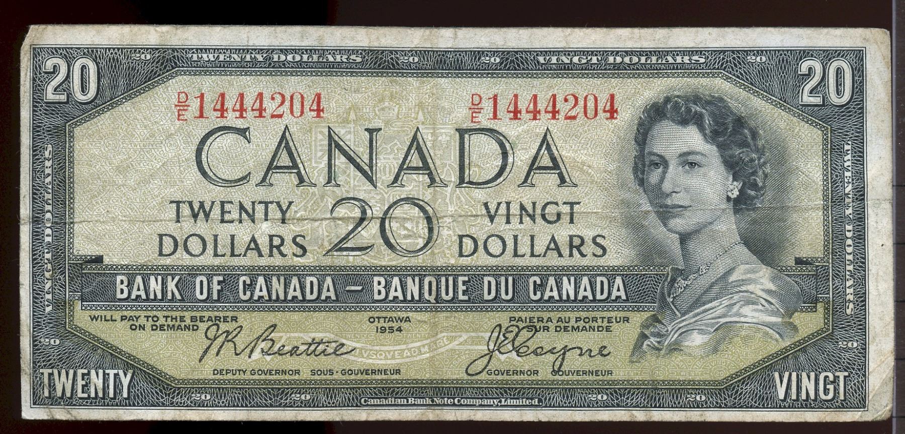 1954 20$ BC-33b #D/E1444204, VG/F for grade.