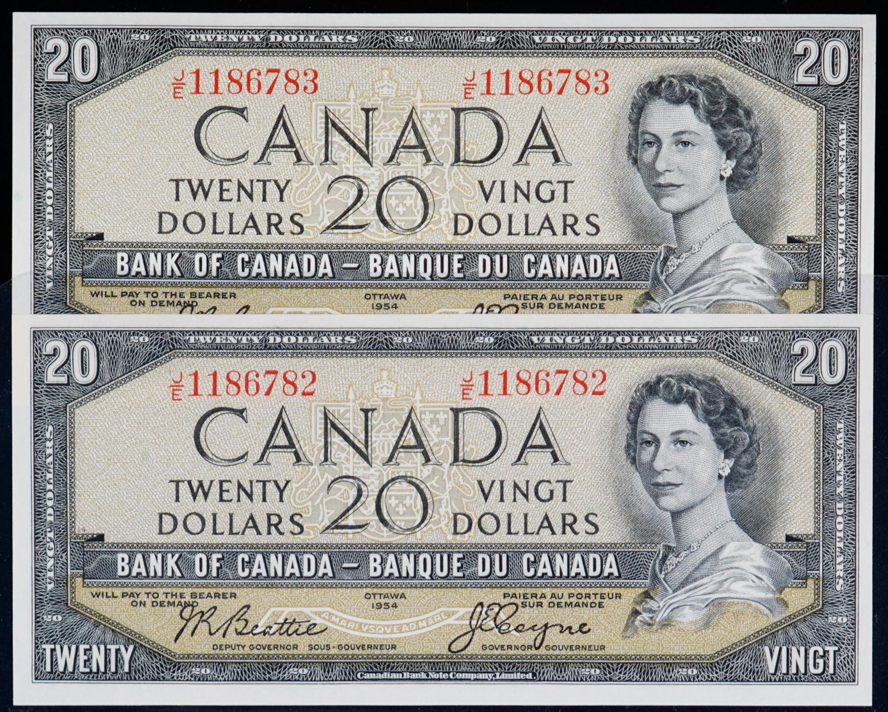 1954 $20 BC-33b #J/E1186782-6783 Lot of 2 consecutive notes Choice Uncirculated or better.
