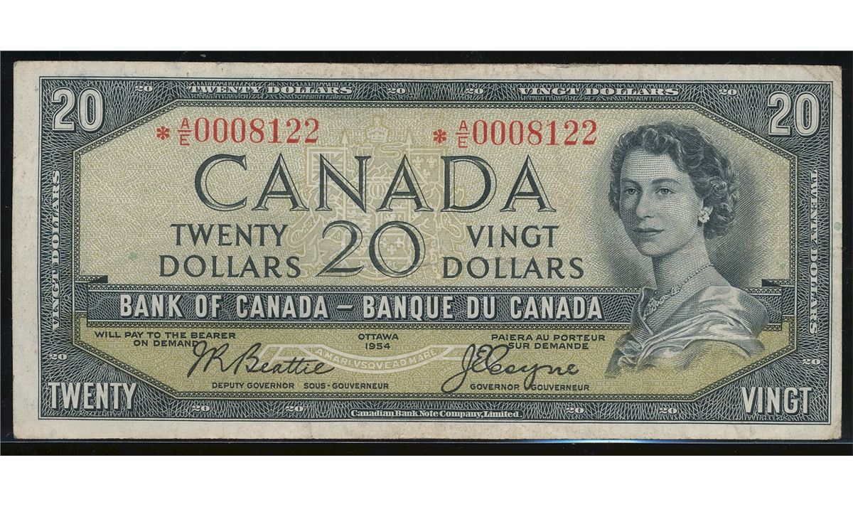 1954 $20 BC-33bA #*AE0008122. Very Rare $20 DF replacement issue. A nice VF issue.