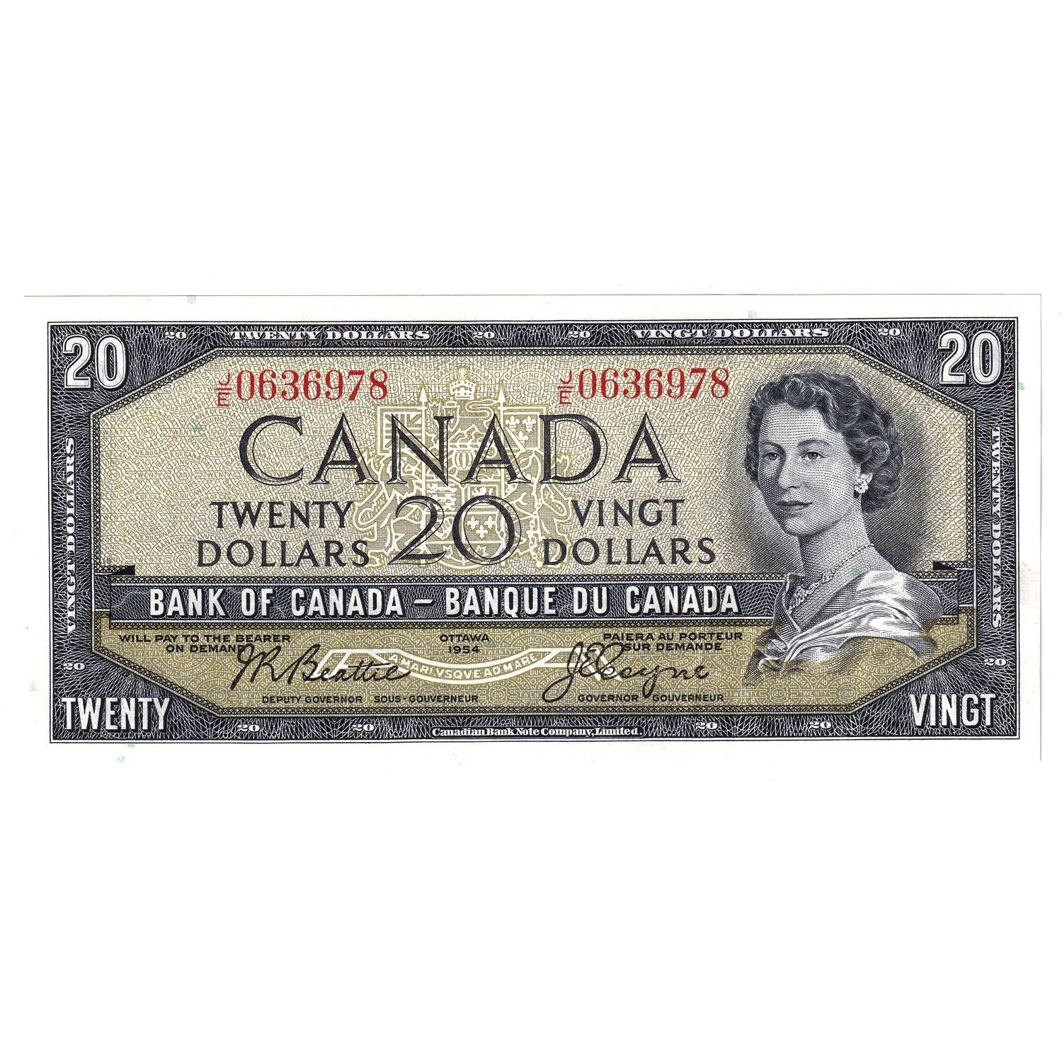 1954 $20 BC-41a Bank of Canada, Beattie-Coyne, J/E0636978, AU.