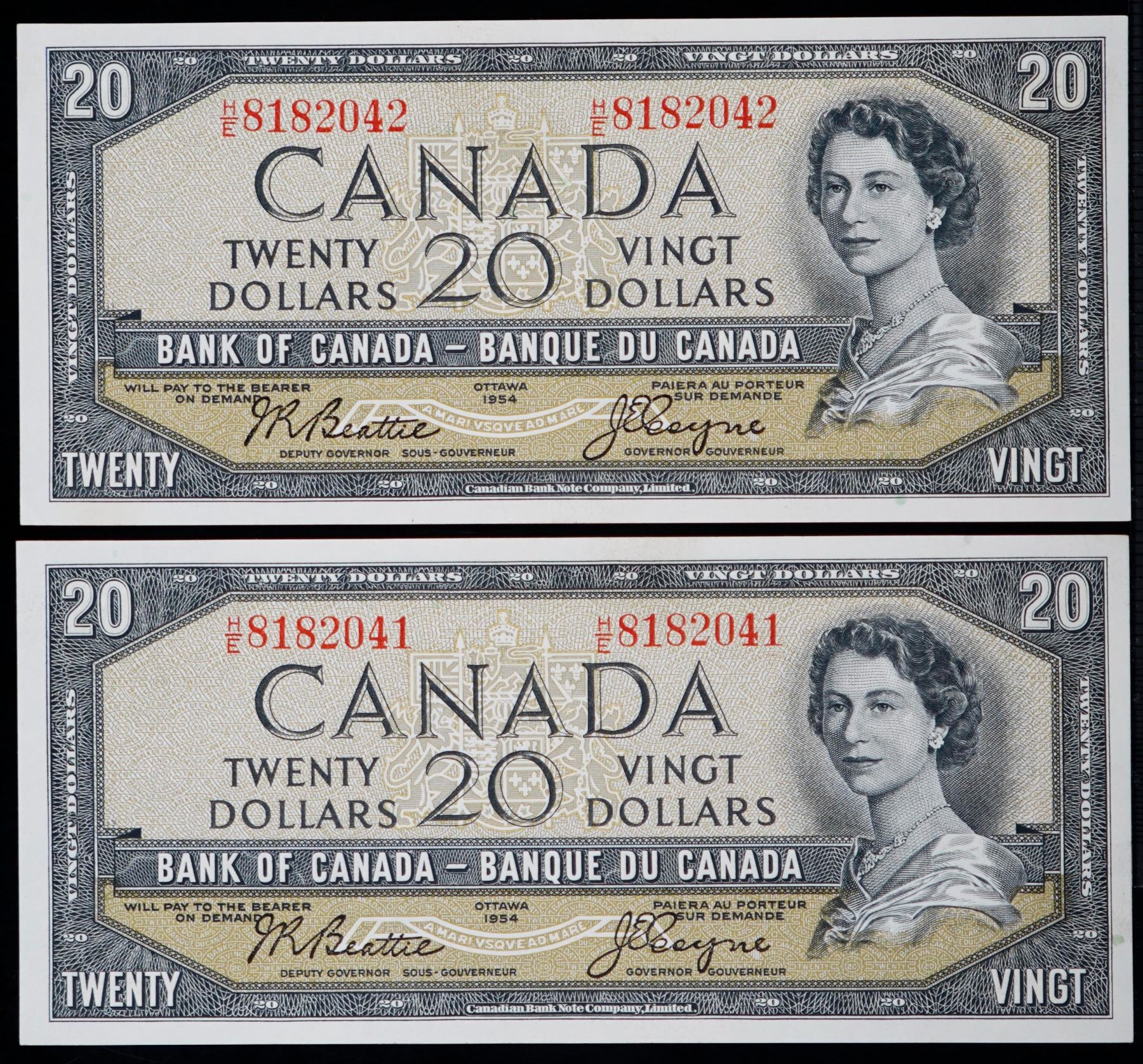 1954 $20 BC-41a #H/E8182041-2042 Lot of 2 consecutive notes Choice to Gem Uncirculated.