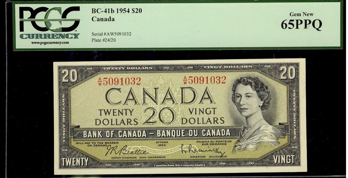 1954 $20 BC-41b #A/W5091032 PCGS UNC65PPQ