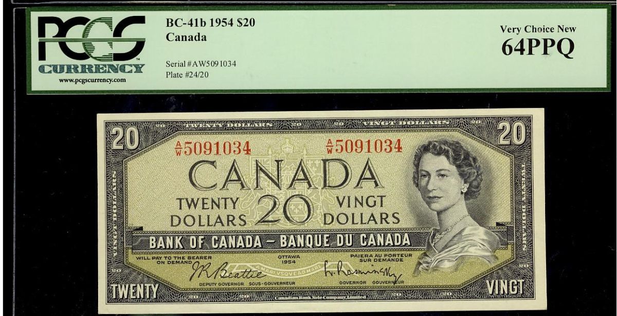 1954 $20 BC-41b #A/W5091034 PCGS UNC64PPQ