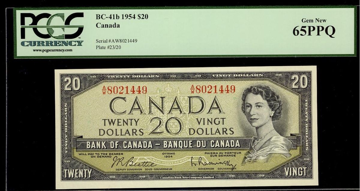 1954 $20 BC-41b #A/W8021449 PCGS UNC65PPQ