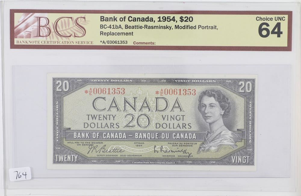 1954 $20 BC-41bA Replacement #*AE0061353 BCS CH UNC64. The note is free of any holes, tears or graffiti.