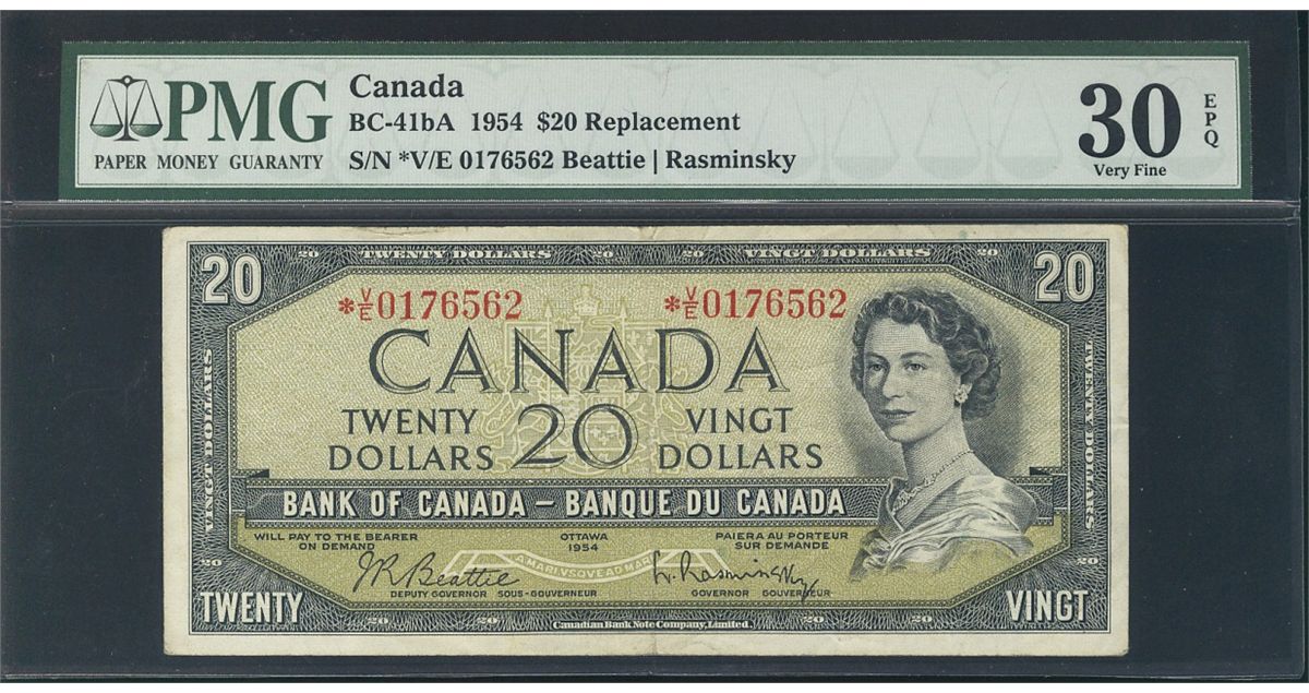 1954 $20 BC-41bA #*VE0176562 PMG VF30 EPQ. A rare prefix.