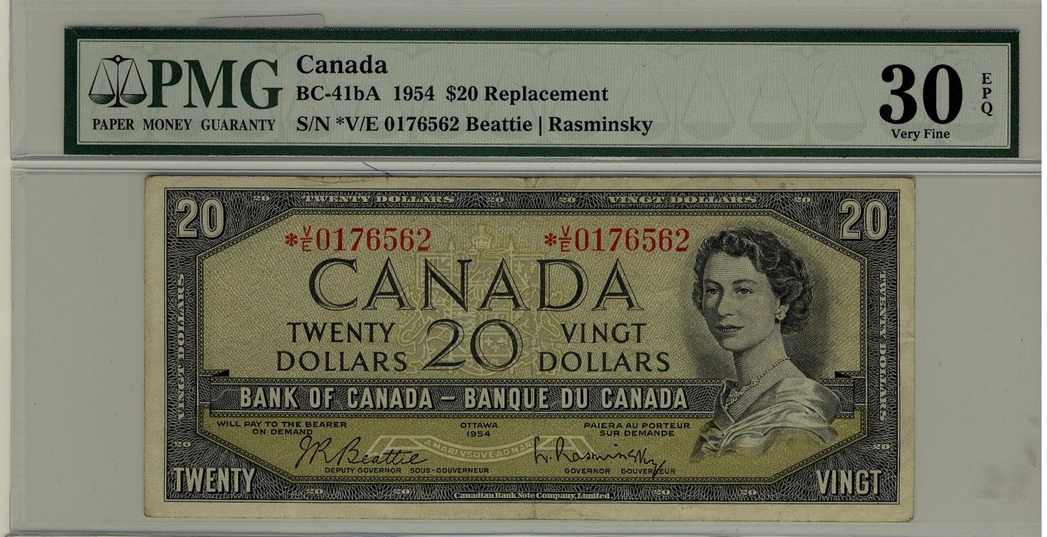 1954 $20 BC-41bA #*VE176562 PMG VF30 EPQ. A rare prefix.