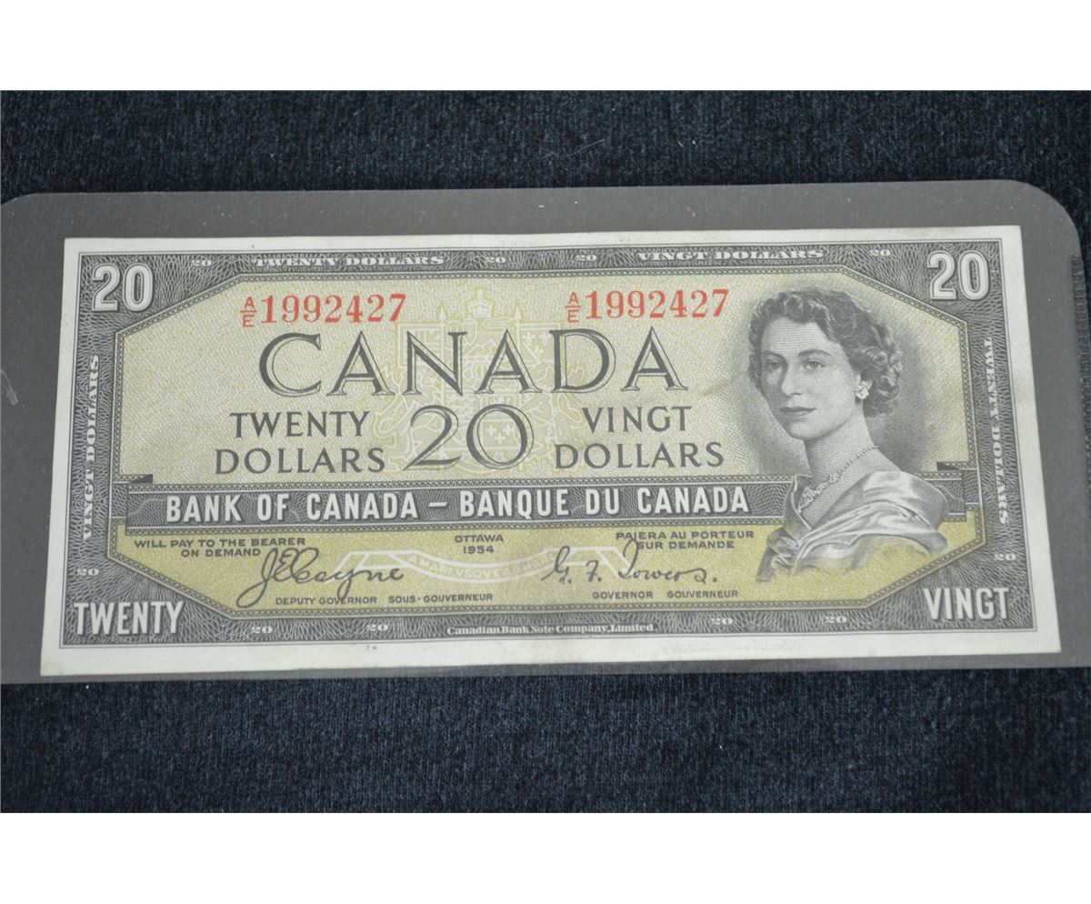 1954 $20 Canada Note - Devils Face - UNC+ - AE 1992427 - BC-33a - Coyne-Towers - Value: $375.00