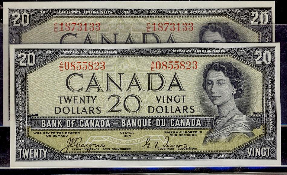 1954 $20 DF BC-33a and BC-33b. Lot of two notes both AU-UNC examples.
