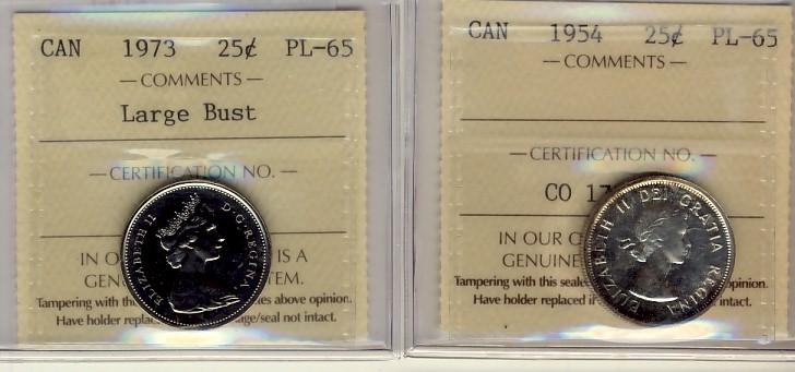 1954 25¢ & 1973 LB ICCS PL65. Lot of 2 coins.
