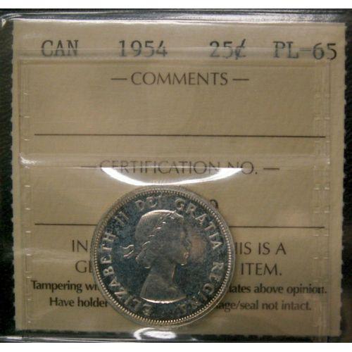 1954 25¢ ICCS PL-65 Brilliant with lots of luster. Excellent strike with clean fields.