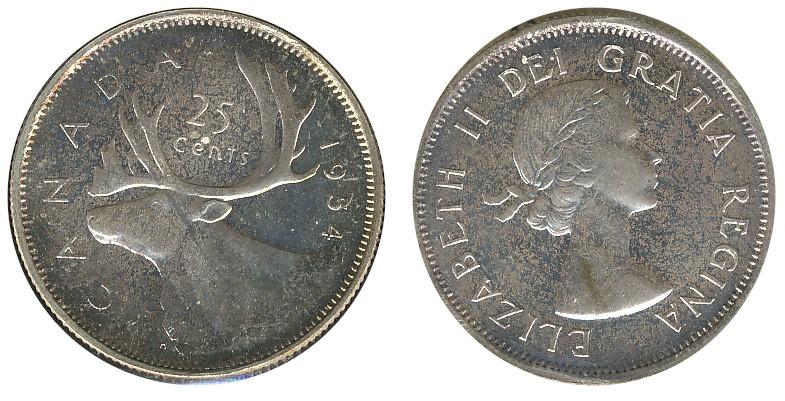 1954 25¢ ICCS PL66 Cameo. PQ toning.