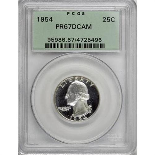<B>1954 25C PR67 Deep Cameo PCGS.</B></I> PCGS Population (19/13). NGC Census: (21/20). (#95986)<BR><BR><b>Shipping:</b> Coins & Currency (<a target="_blank" href="http://www.heritageauctions.com/common/shipping.php">view shipping information</a>)