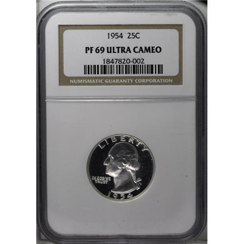 1954 25C PR69 Ultra Cameo NGC. Strong contrast and ref