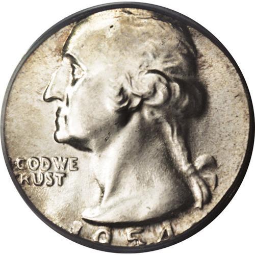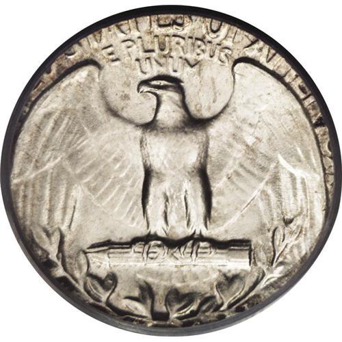<B>1954<25C> Washington Quarter--Struck on Silver Dime Planchet--MS63 PCGS.</B></I> This Washington quarter is struck on a planchet intended for a Roosevelt dime, with a fairly well centered strike that shows the top of the 1954 date visible, along with the central Washington details and a portion of IN GOD WE TRUST. The reverse shows the central eagle figure, E PLURIBUS UNUM, and part of the legend. The coin is Mint State, with a tinge of copper-gold and good luster.