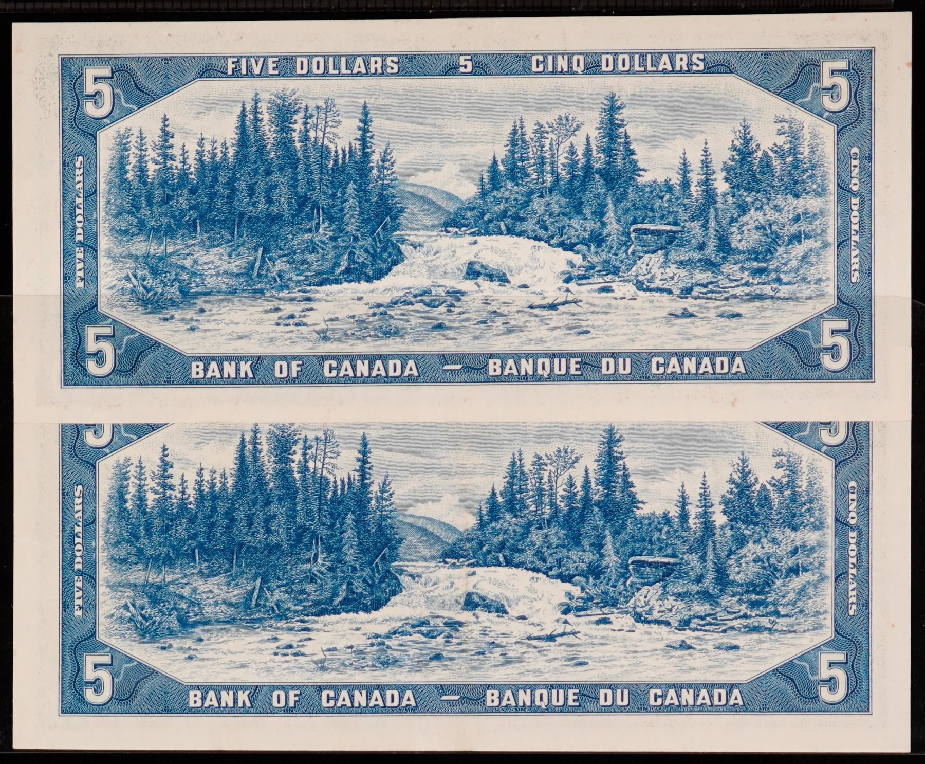 1954 $5 BC-31a #A/C8280518-0519. Lot of 2 consecutive Devil's Face notes in AU or better.