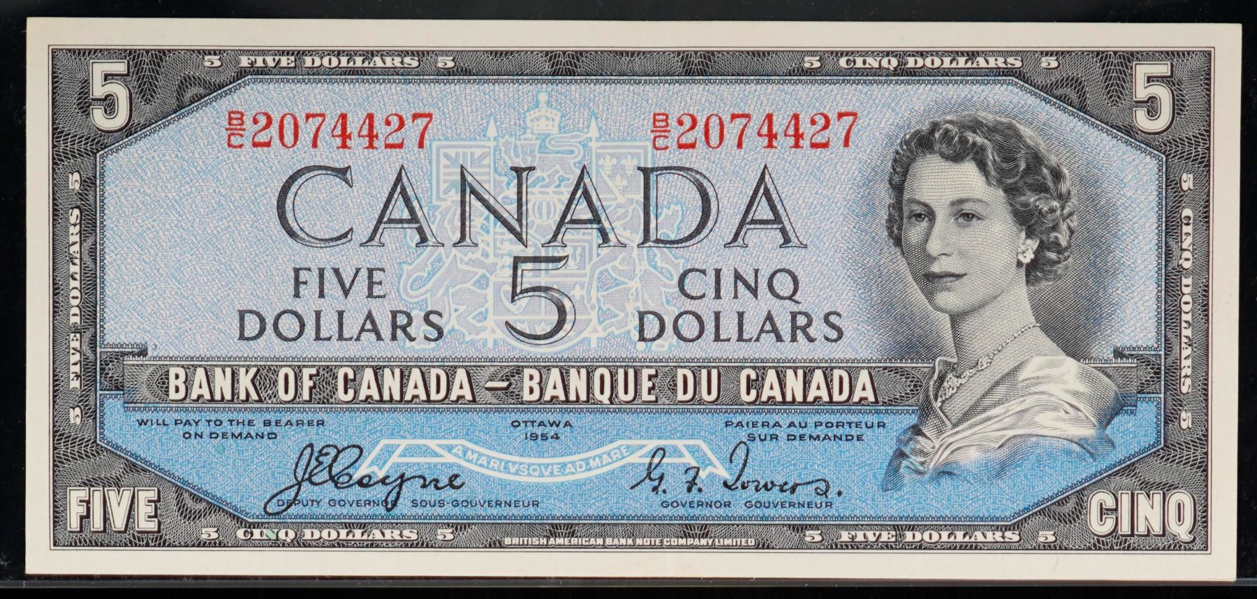 1954 $5 BC-31a #B/C2074427 AU-UNC. A nice crisp and original example.