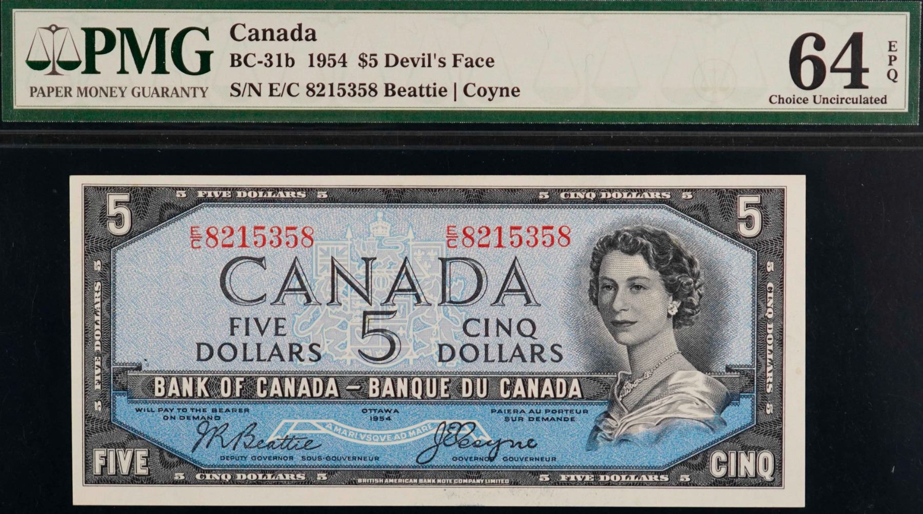1954 $5 BC-31b #E/C8215358, PMG Very Choice Uncirculated-64EPQ.