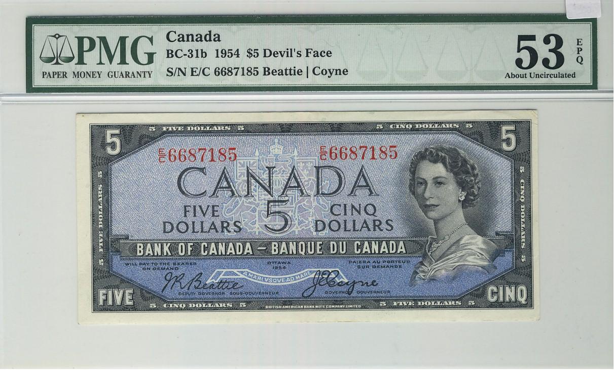 1954 $5 BC-31b #EC6687185, PMG AU53EPQ.