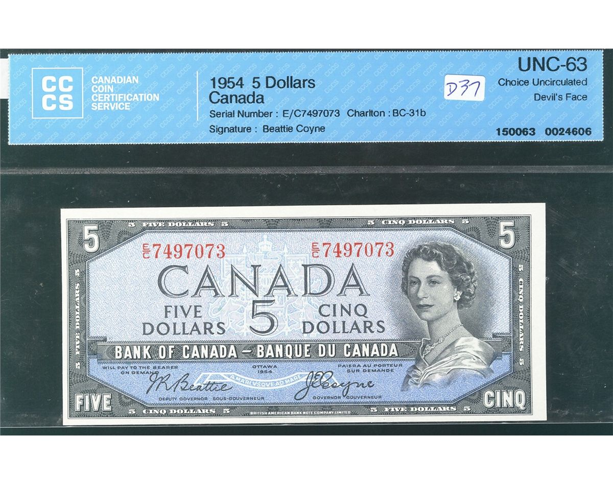 1954 $5 BC-31b #EC7497073 CCCS CH UNC63.