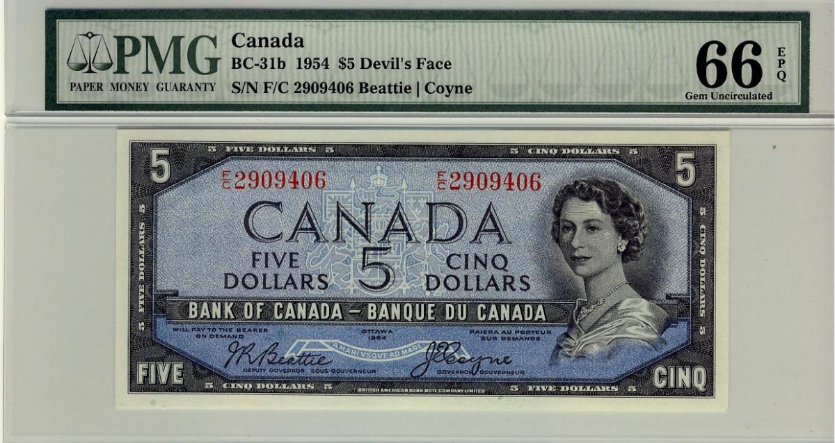 1954 $5 BC-31b #FC2909406 PMG Gem UNC66 EPQ.