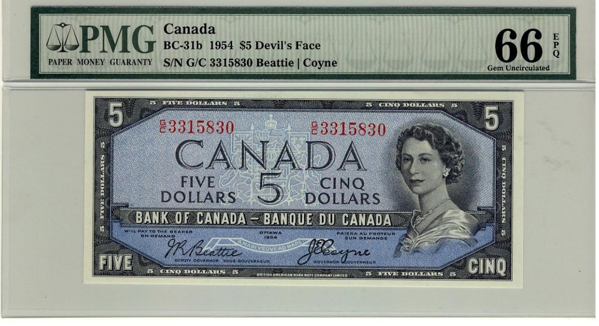 1954 $5 BC-31b #GC3315830 PMG Gem UNC66 EPQ.