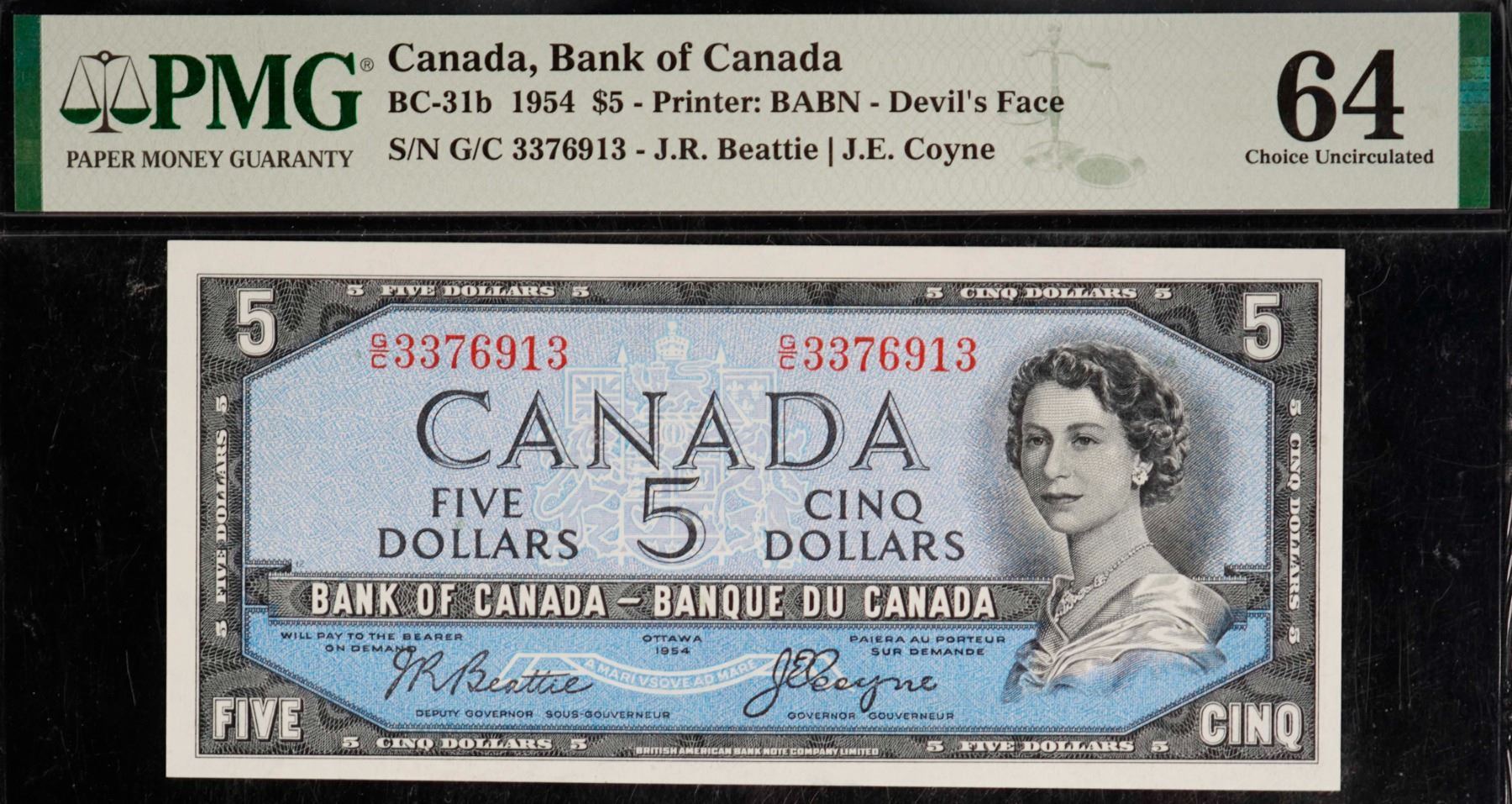 1954 $5 BC-31b #GC3376913, Legacy Choice Uncirculated-64. Devil's face