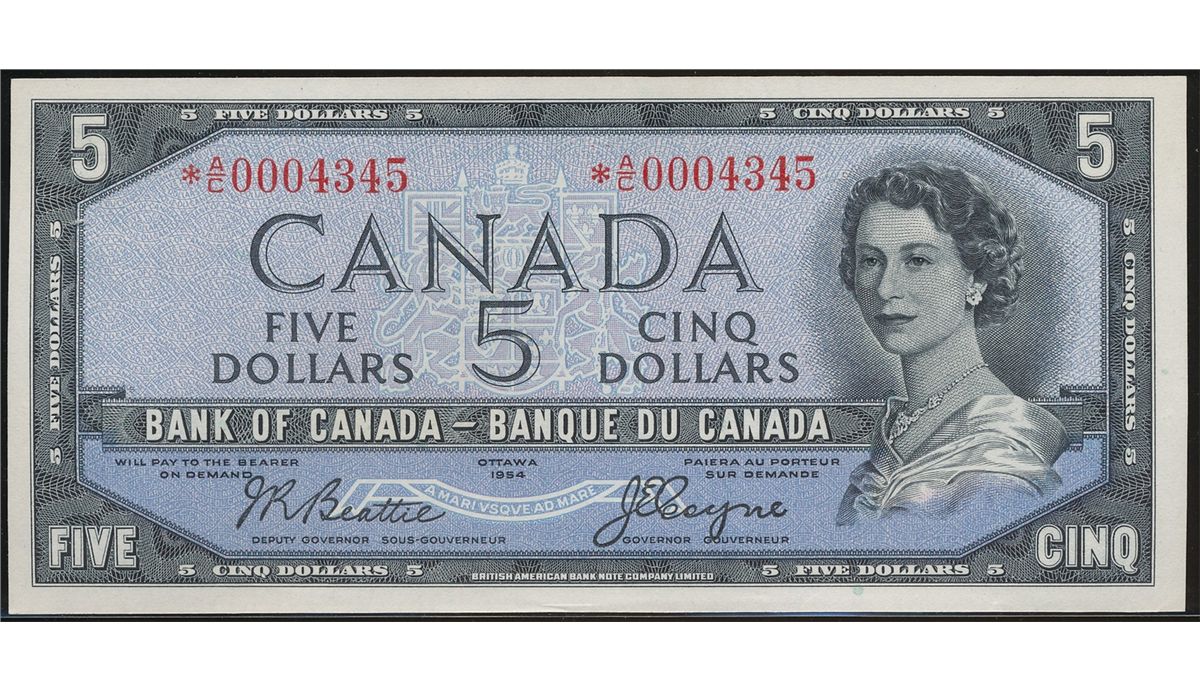 1954 $5 BC-31bA #*0004345. Very Rare $5 DF replacement issue. A sharp AU/UNC issue.
