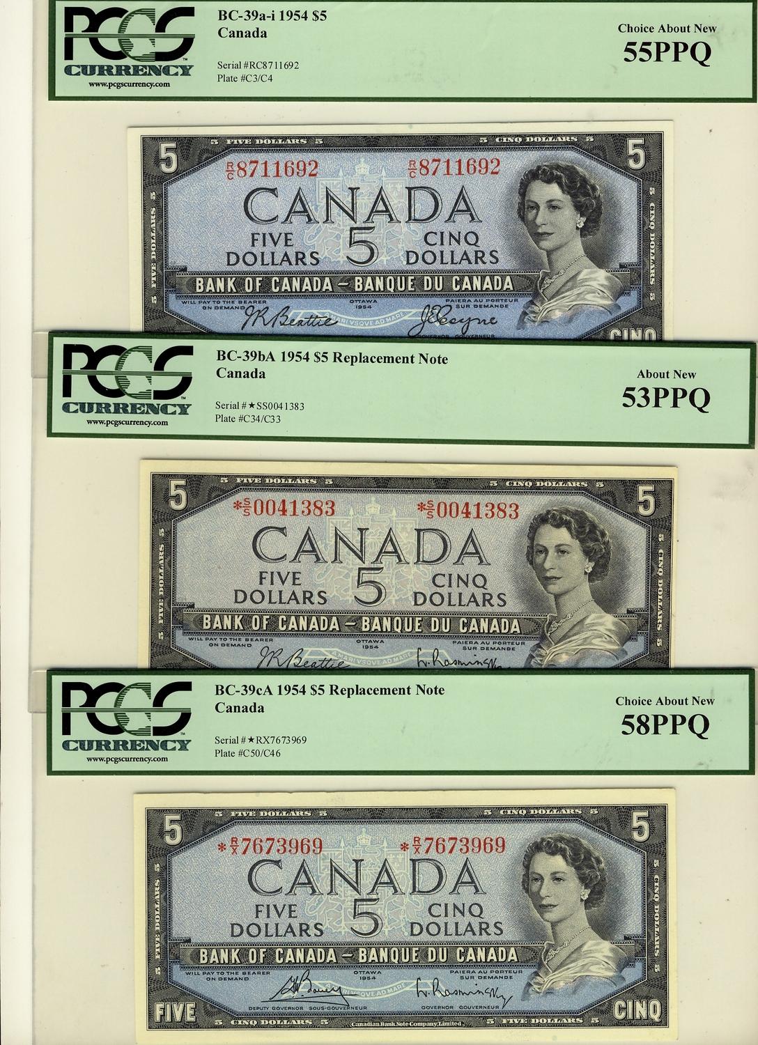 1954 $5 BC-39a-i CH AU55PPQ, BC-39bA AU53PPQ & BC-39cA CH AU58PPQ. Lot of 3 PCGS graded notes.