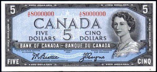 1954 Five Dollars Beattie-Coyne, BC-39a-i, serial number X/C8000000, AU
