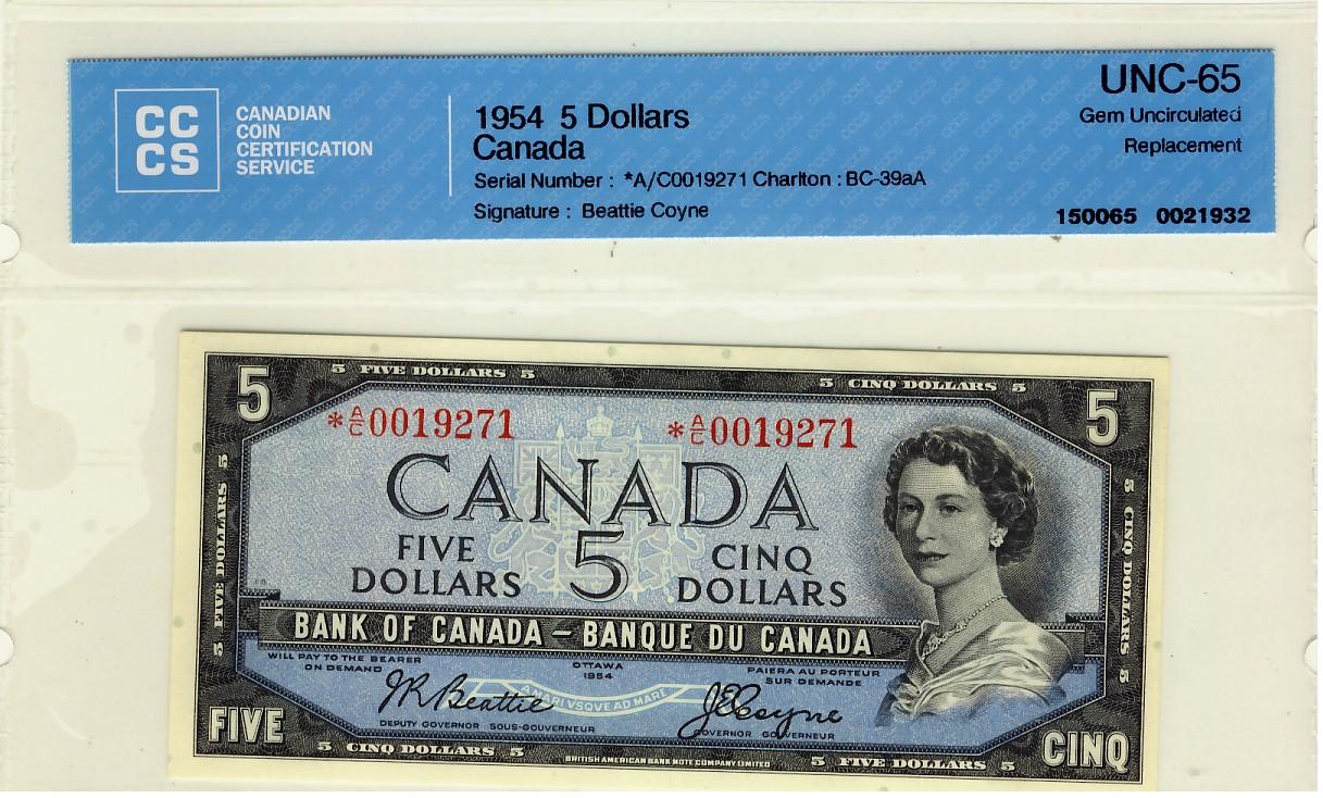1954 $5 BC-39aA #AC0019271 CCCS Choice UNC64,