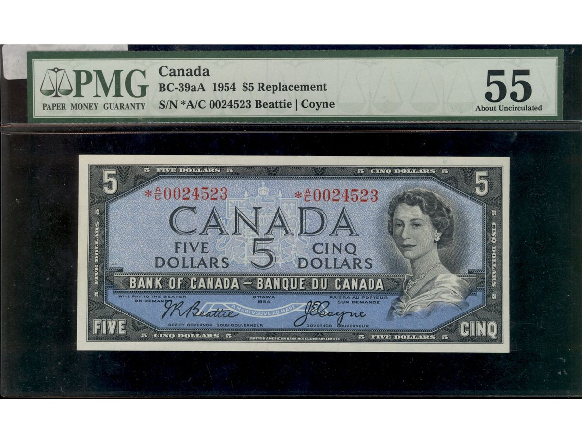 1954 $5 BC-39aA #*AC0024523, PMG AU55.