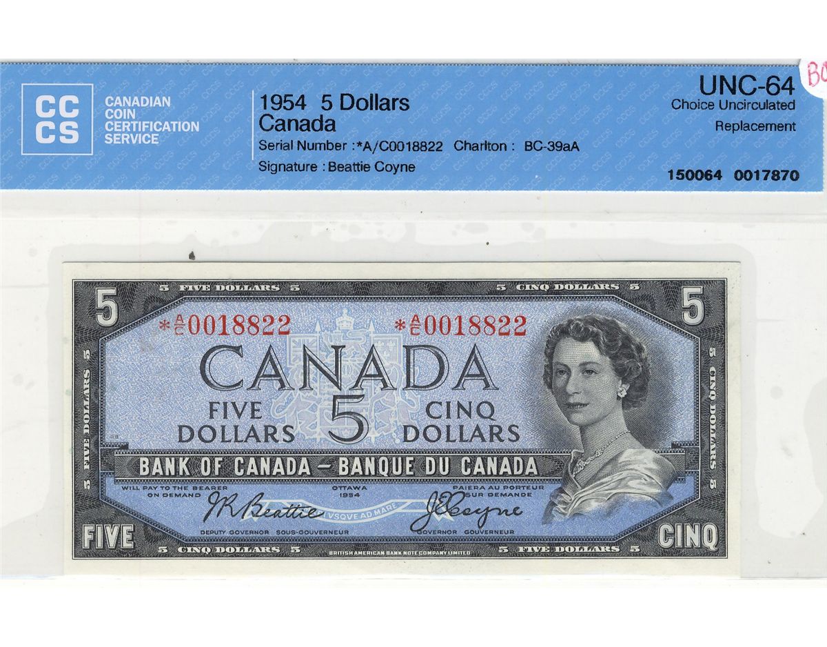 1954 $5 BC-39aA Replacement *A/C CCCS UNC-64.