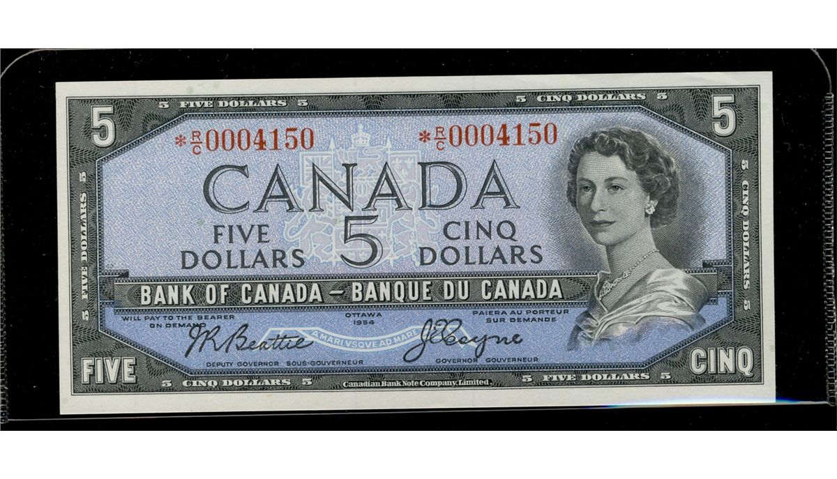 1954 $5 BC-39aA-i #*RC0004150. Crisp UNC issue.