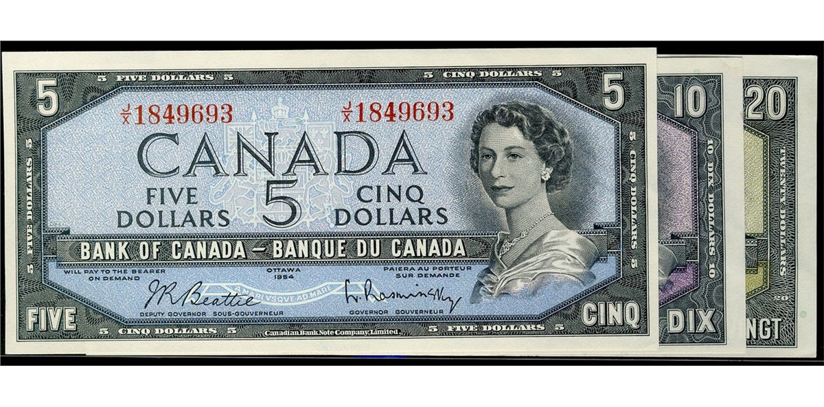 1954 $5 BC-39b, $10 BC-40b & $20 BC-41b. Lot of 3 notes Nice AU/UNC issues.