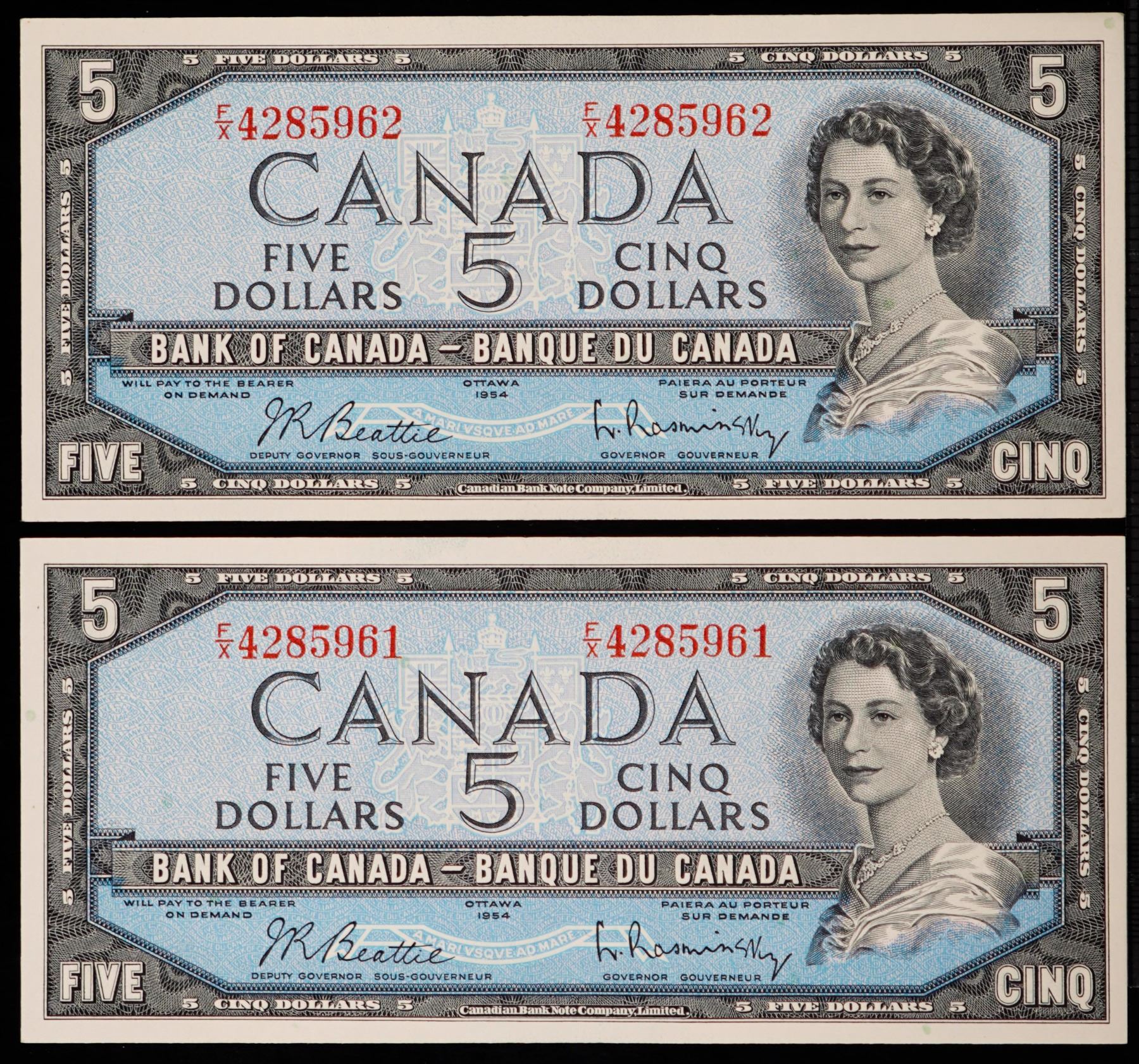 1954 $5 BC-39b #F/X4285961-5962 Lot of 2 consecutive notes AU
